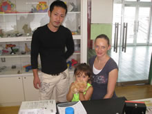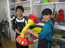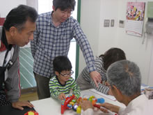 | 見事修理完成させたおもちゃの前でにっこり! | ||
