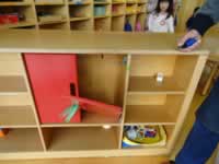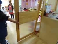 | 1階教材室の扉 | 0歳児クラスの仕切り板 | 2歳児クラスの仕切り板 |