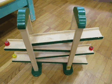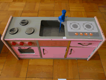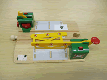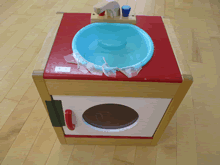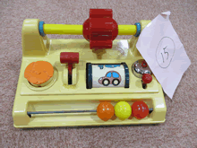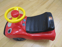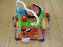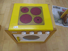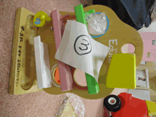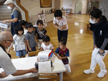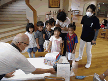 | おもちゃ修理を興味深く見学する園児たち | ||