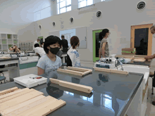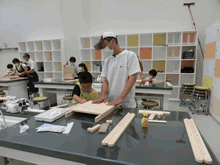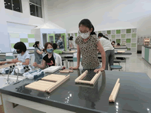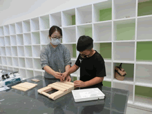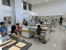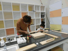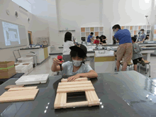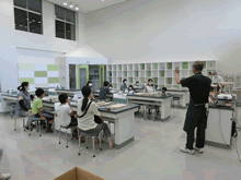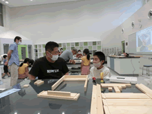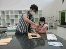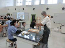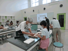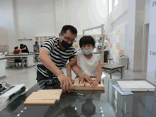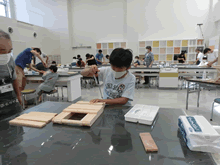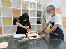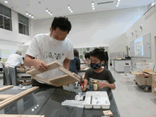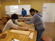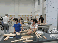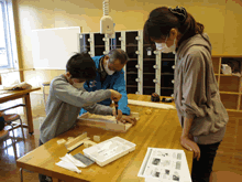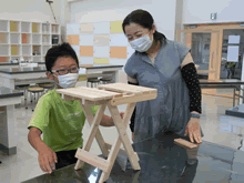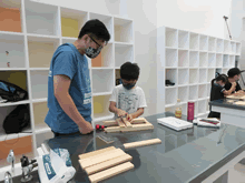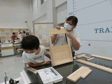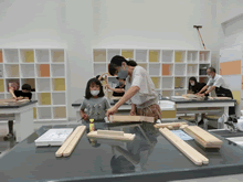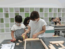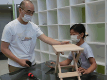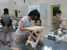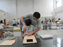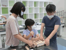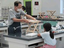 | 8月14日(土)に刈谷市夢と学びの科学体験館で「親子ものづくり教室」が開催されました。 この教室は、刈谷おもちゃ病院が委託を受けて開催しました。 午前の部で20組の親子、午後の部で19組の親子、合計40組の親子が「エコな折りたたみテーブル」づくりに挑戦しました。 参加者の親子は、刈谷おもちゃ病院のボランティアドクターの指導を受けて、真剣にエコな折りたたみテーブルづくりを楽しみました。 |