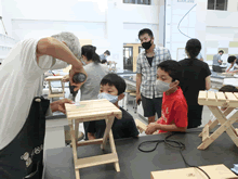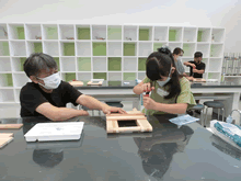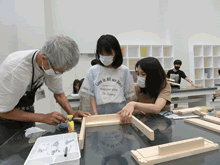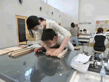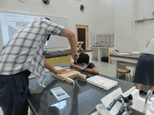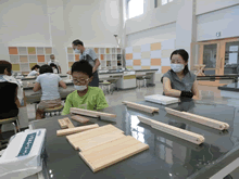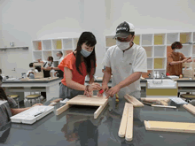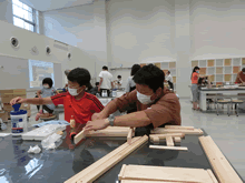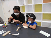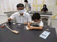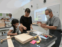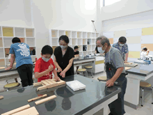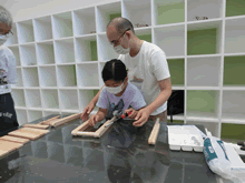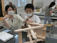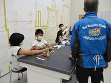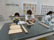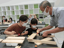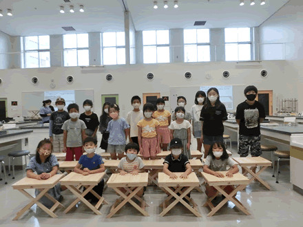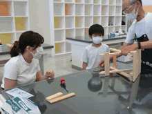 | 8月7日(土)に刈谷市夢と学びの科学体験館で「親子ものづくり教室」が開催されました。 この教室は、刈谷おもちゃ病院が委託を受けて開催しました。 午前の部で20組の親子、午後の部で12組の親子、合計32組の親子が「エコな折たたみ椅子」づくりに挑戦しました。 参加者の親子は、刈谷おもちゃ病院のボランティアドクターの指導を受けて、真剣にエコな折りたたみイスづくりを楽しみました。 |