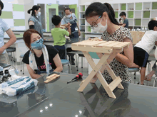 | ★夢と学びの科学体験館「親子ものづくり教室でエコな折りたたみテーブルづくり」を刈谷おもちゃ病院が開催しました★ | ||