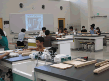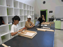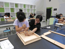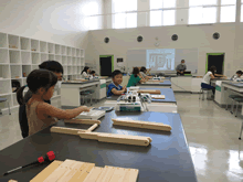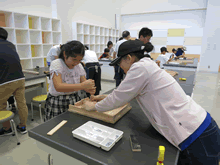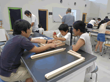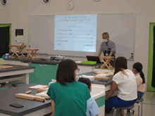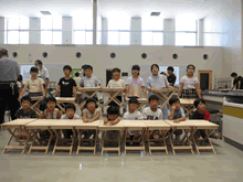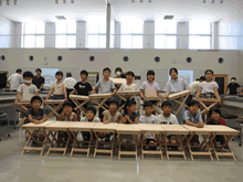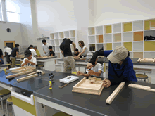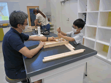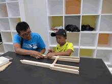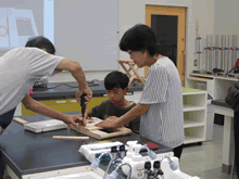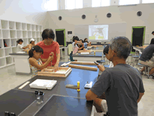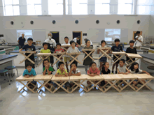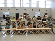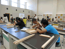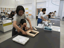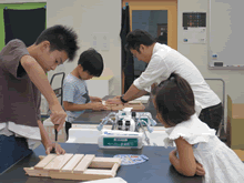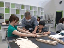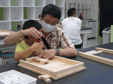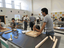 | 8月12日(土)に刈谷市夢と学びの科学体験館で「夏休み親子ものづくり教室」が開催されました。 この教室は、刈谷おもちゃ病院が委託を受けて開催しました。 午前の部で20組の親子、午後の部で20組の親子、合計40組の親子が「エコな折りたたみテーブル」づくりに挑戦しました。 参加者の親子は、刈谷おもちゃ病院のボランティアドクターの指導を受けて、真剣に「エコな折りたたみテーブル」づくりを楽しみました。 |