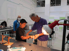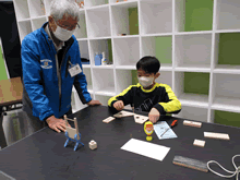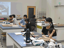 | 8月12日(土)に刈谷市夢と学びの科学体験館で「ソーラパネル回転飛行塔づくり」が開催されました。 この教室は、刈谷おもちゃ病院が委託を受けて開催しました。 午前の部で2組の親子、午後の部で6組の親子、合計40組の親子が「ソーラパネル回転飛行塔づくり」づくりに挑戦しました。 参加者の親子は、刈谷おもちゃ病院のボランティアドクターの指導を受けて、真剣に「ソーラパネル回転飛行塔づくり」づくりを楽しみました。 |