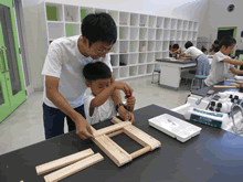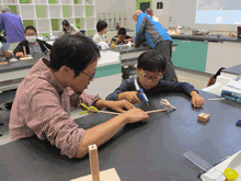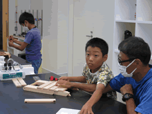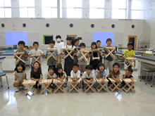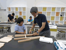 | 8月5日(土)に刈谷市夢と学びの科学体験館で「夏休み親子ものづくり教室」が開催されました。 この教室は、刈谷おもちゃ病院が委託を受けて開催しました。 午前の部で20組の親子、午後の部で20組の親子、合計40組の親子が「エコな折りたたみイス」づくりに挑戦しました。 参加者の親子は、刈谷おもちゃ病院のボランティアドクターの指導を受けて、真剣に「エコな折りたたみイス」づくりを楽しみました。 |