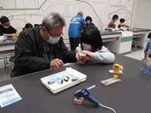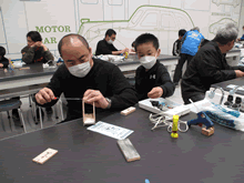 | 3月18日(土)に刈谷市夢と学びの科学体験館で「親子ものづくり教室」が開催されました。 この教室は、刈谷おもちゃ病院が委託を受けて開催しました。 午前の部で10組の親子、午後の部で10組の親子、合計20組の親子が「マイコンお茶運びロボット」づくりに挑戦しました。 参加者の親子は、刈谷おもちゃ病院のボランティアドクターの指導を受けて、真剣にエコなマイコンお茶運びロボットづくりを楽しみました。 |